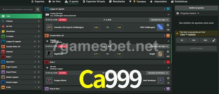 O Ca999 oferece uma grande seleção de opções de apostas em e-sports com probabilidades competitivas